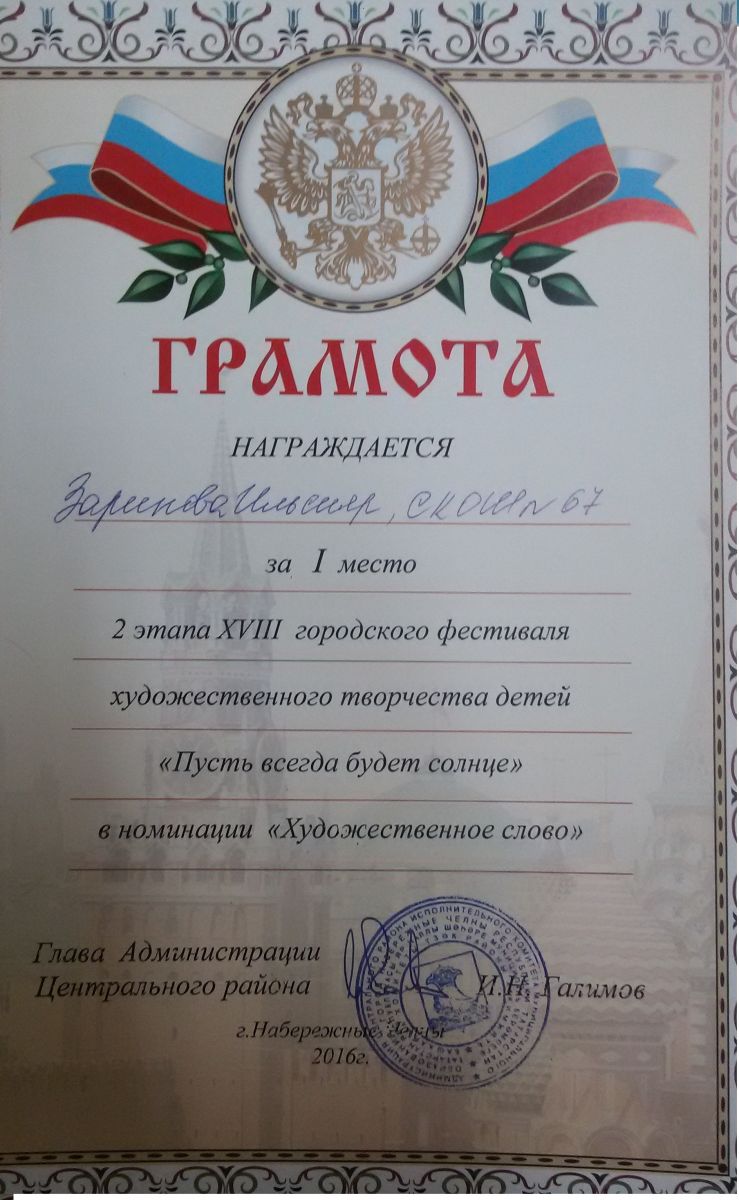 - "Художественное слово" Грамота 1 место,