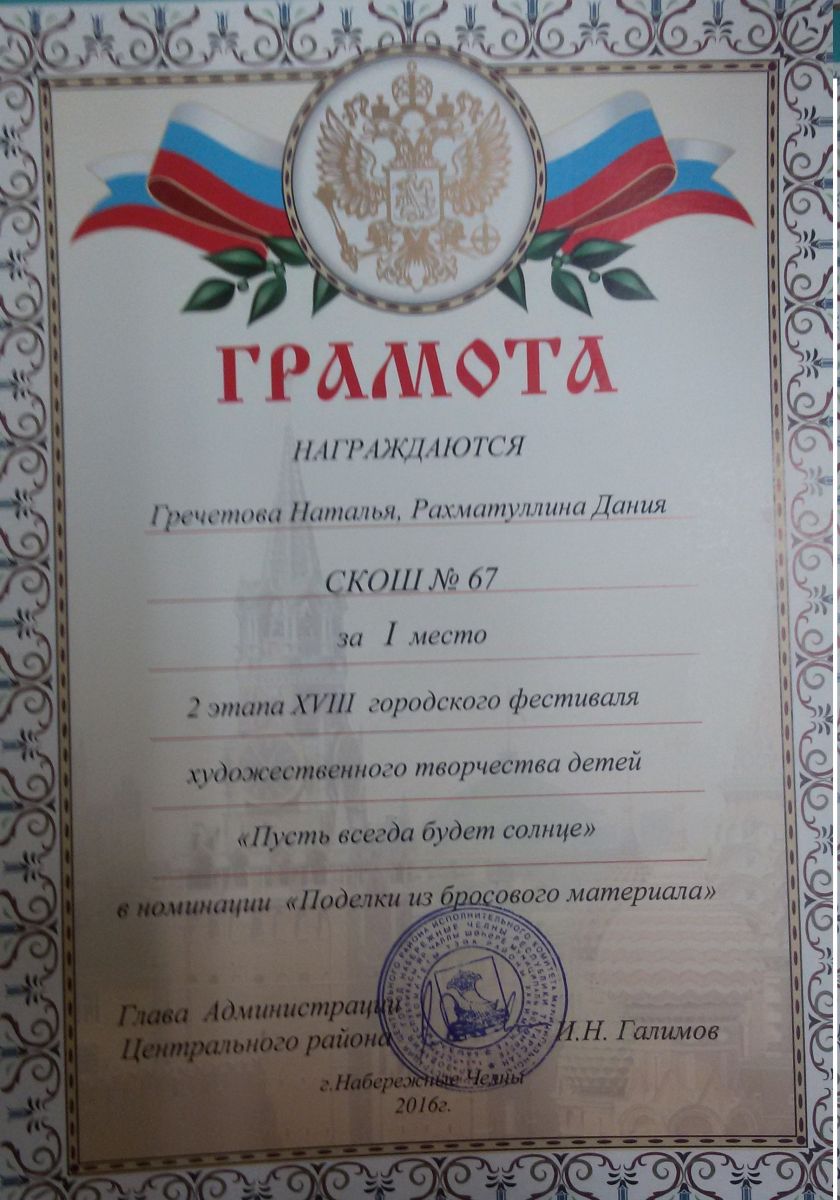 - "Поделки из бросового материала" Грамота 1 место,