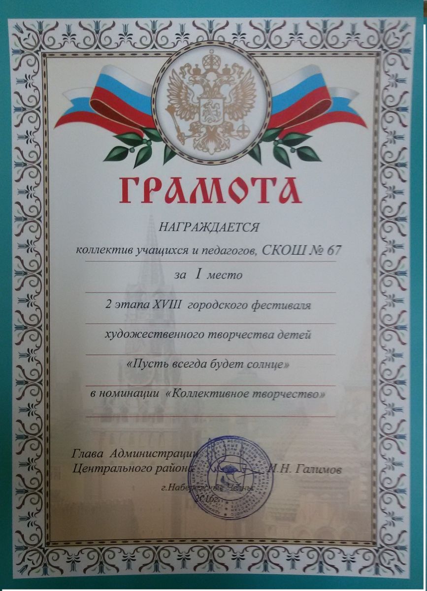 - "Коллективное творчество" Грамота 1 место