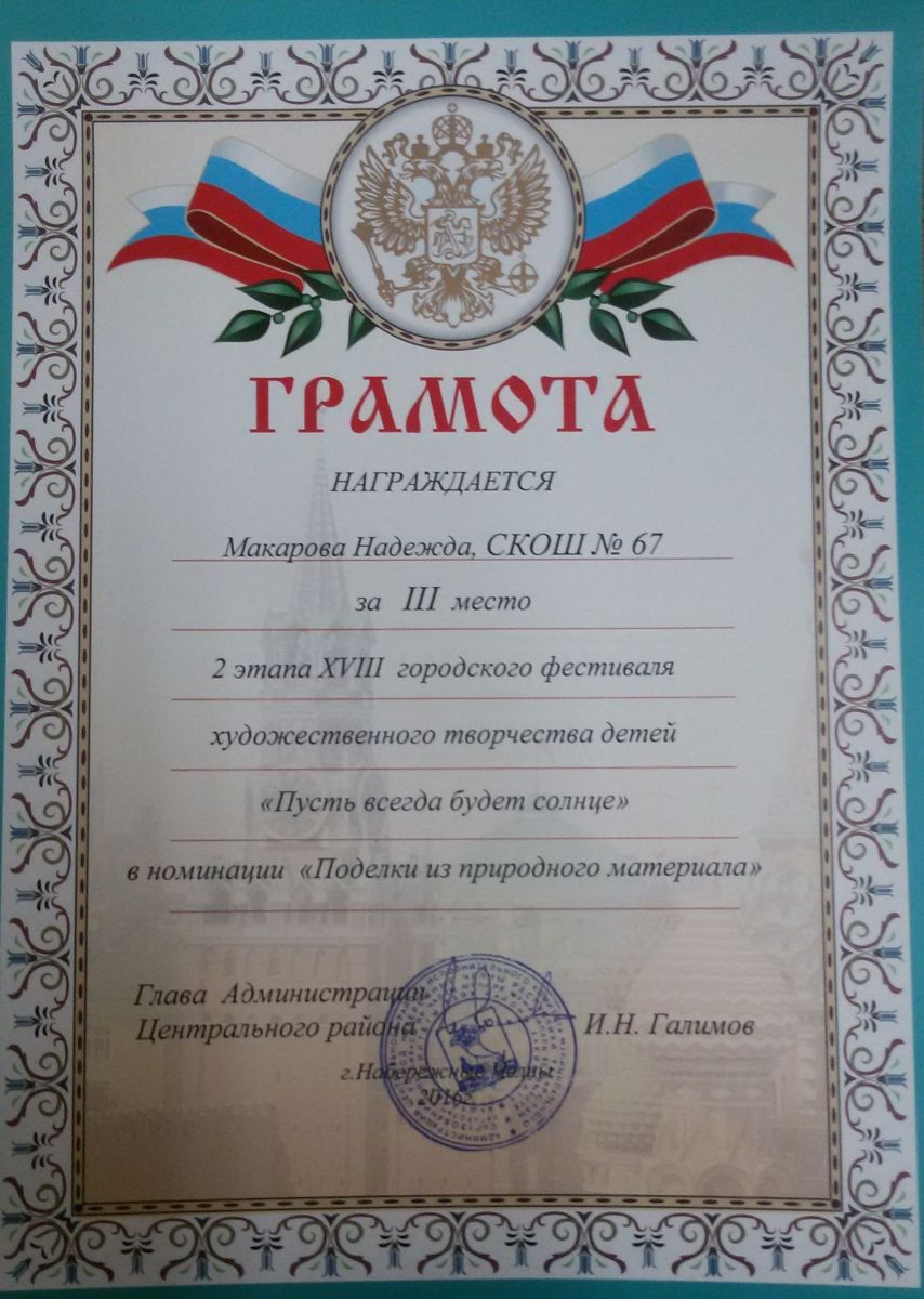 - "Поделки из природного материала" Грамота 3 место