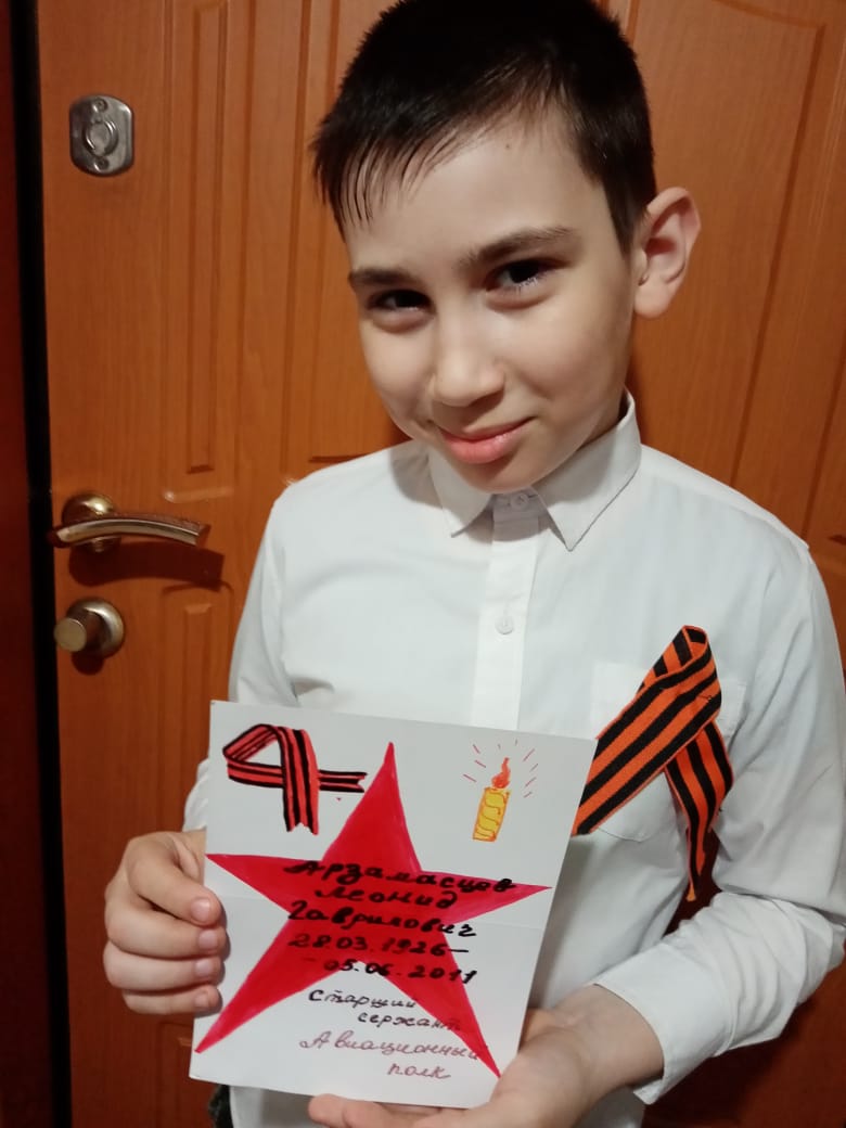 Опубликовано: 07.05.2021Обучающиеся ГБОУ "Набережночелнинская школа № 67" участвуют в праздновании 76-летии Великой Победы. " Мы помним, мы гордимся!".