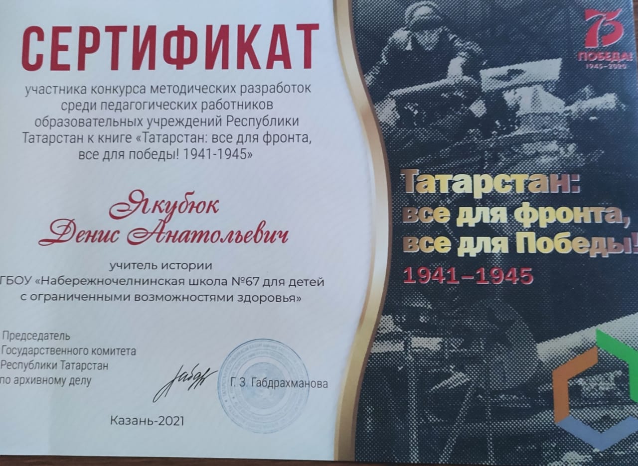 #Татарстанвсёдляфронтавсёдляпобеды1941-1945 cертификат