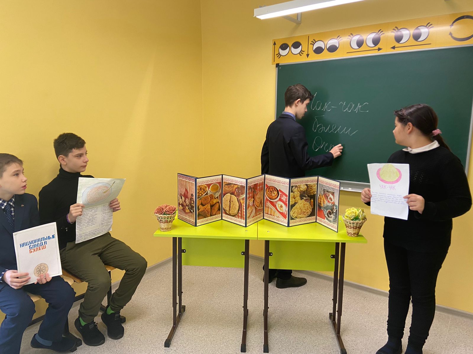Опубликовано: 17.02.2022Классный час на тему «Национальные традиции. Национальные блюда» посвящённый дню Родного языка. Ученики 6 б класса подготовили сообщение и иллюстрацию о национальных блюдах.