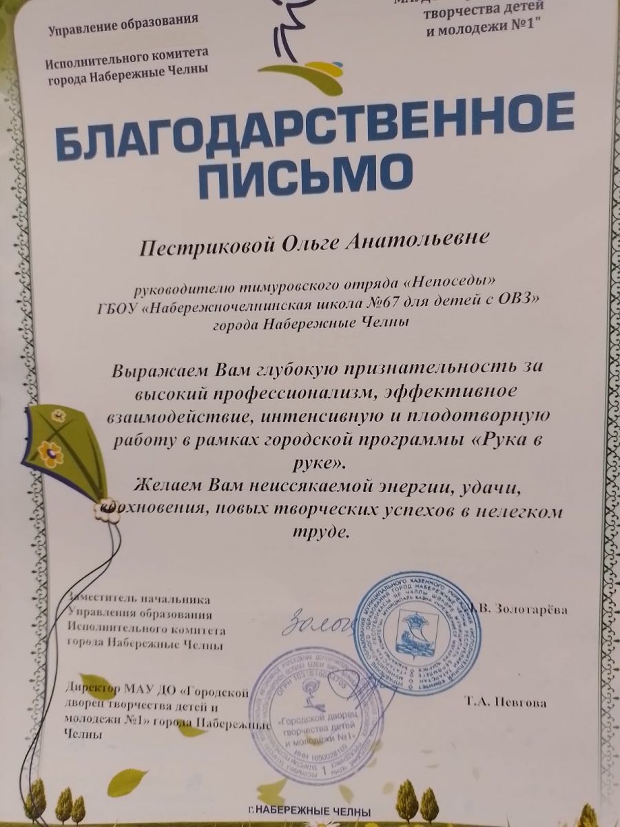 государственное бюджетное общеобразовательное учреждение «Набережночелнинская школа №67 для детей с ограниченными возможностями здоровья»