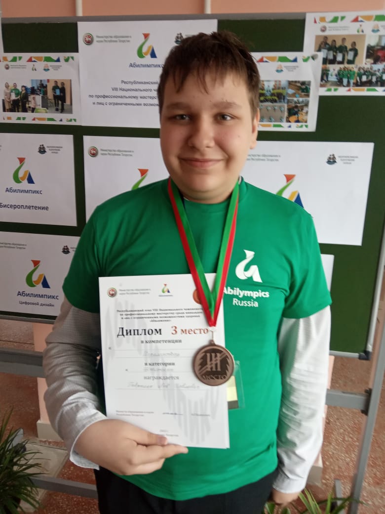 Опубликовано: 13.05.2022Поздравляем победителя Республиканского этапа VIII Национального чемпионата по профессиональному мастерству среди инвалидов и лиц с ограниченными возможностями здоровья.