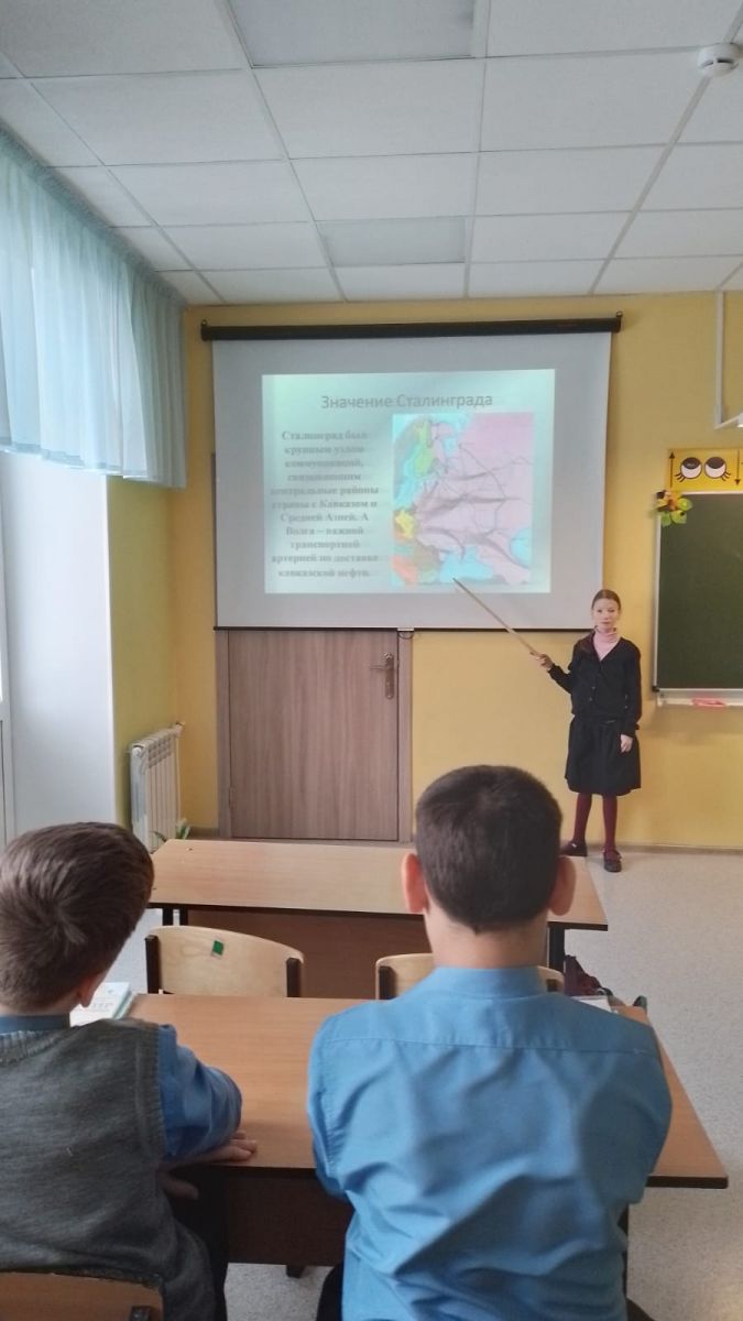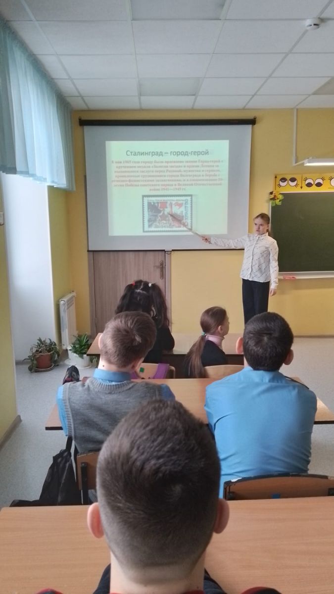 Опубликовано: 03.02.202303.02.2023 года в школе прошли классные часы на тему "Сталинградская битва".Цель мероприятия : способствовать формированию чувства патриотизма, гордости за прошлое своей страны.