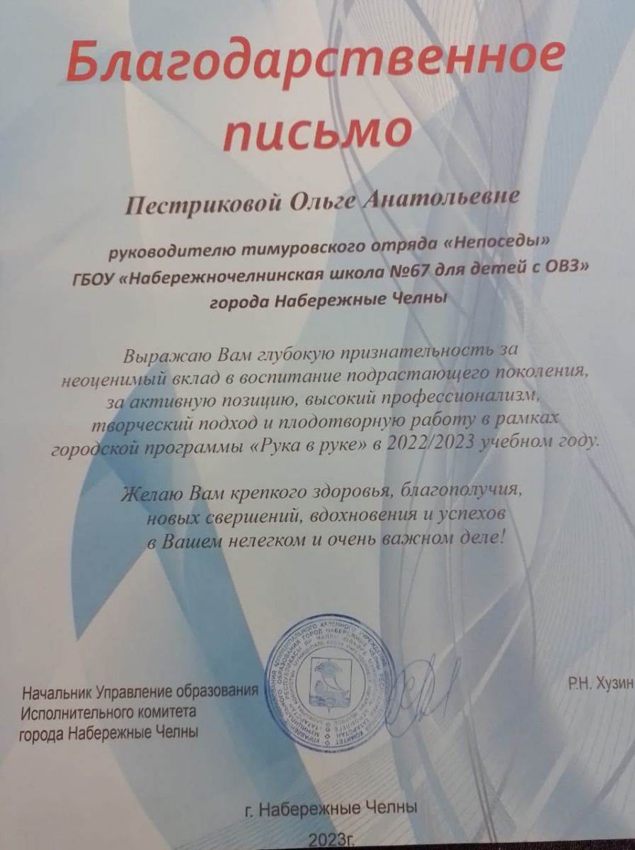 государственное бюджетное общеобразовательное учреждение «Набережночелнинская школа №67 для детей с ограниченными возможностями здоровья»
