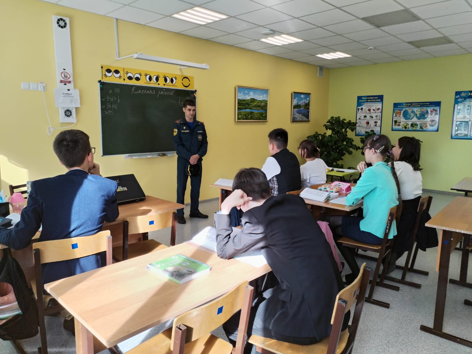 Опубликовано: 28.09.202328.09.2023 года в школе прошли уроки безопасности с участием начальника караула пожарно-спасательной части 56 Хусниева Р. Р.