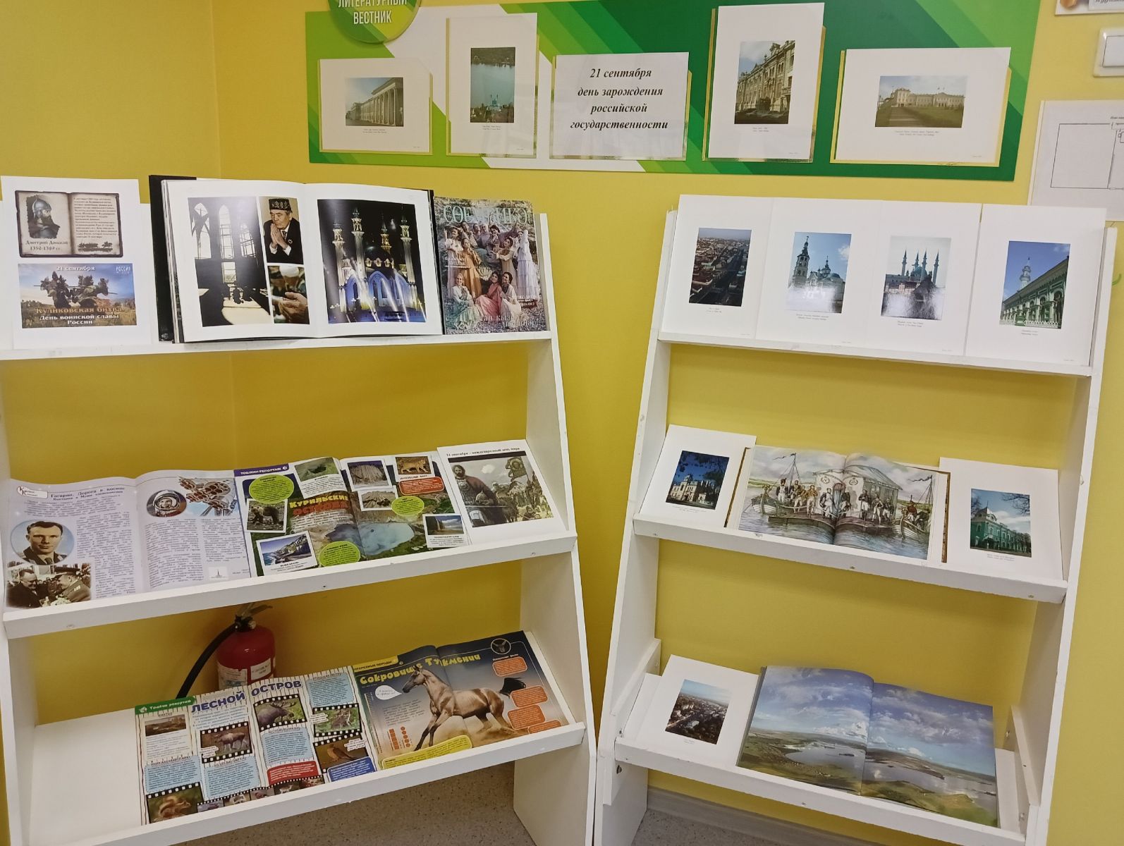 видеороликов «ДНК России». Школьный библиотекарь Ольга Николаевна Кудимова подготовила выставку кних и журналов о красоте нашей Родины, научных достижениях и знаменитых людях, служивших во славу Отечества.