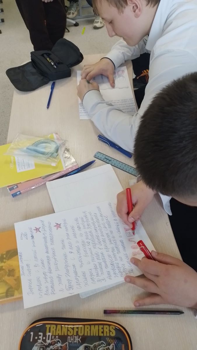 Опубликовано: 23.04.2025Обучающиеся 8а класса принимают участие в акции "Письмо солдату". Ребята подготовили письма с поздравлениями для военнослужащих, участников специальной военной операции. Ребята написали трогательные и тёплые письма для участников СВО, пожелали здоровья солдатам и их семьям, а самое главное поскорее вернуться домой к родным и близким.