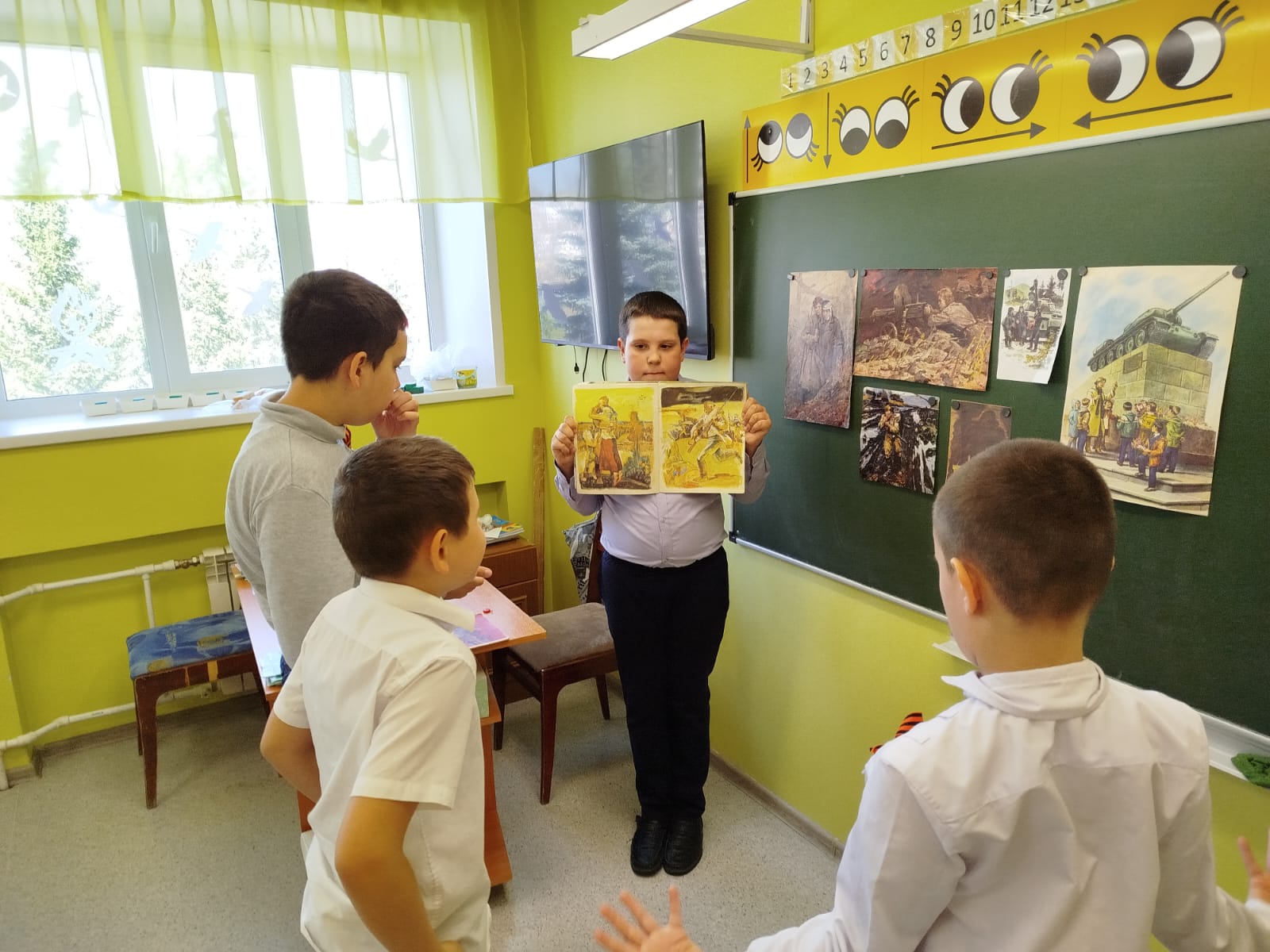 Опубликовано: 22.04.2025Во время внеурочной деятельности по направлению "Читаю в поисках смысла" Ребята 4б класса с интересом работали над рассказами и стихотворениями о ВОВ. Читали произведения, пересказывали понравившиеся отрывки, отвечали на вопросы по текстам.