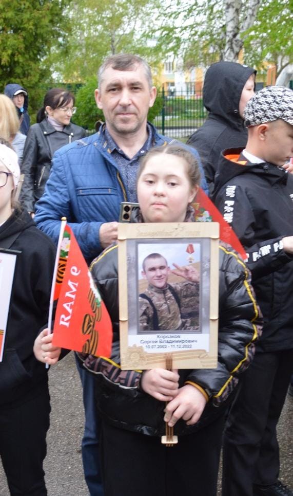 Опубликовано: 07.05.20256 мая 2025 года в ГБОУ «Набережночелнинская школа №67» акция «Бессмертный полк» обрела особый, пронзительный смысл. Среди десятков портретов героев Великой Отечественной войны в строю памяти шагала ученица, держа в руках фотографию своего старшего брата — Сергея Владимировича Корсакова, погибшего в ходе специальной военной операции.