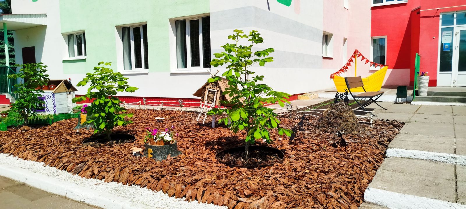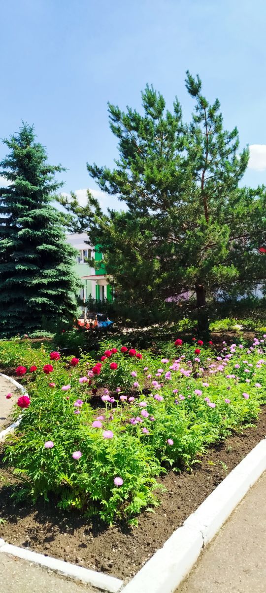 Обучающиеся трудовой бригады совместно с педагогами занимаются благоустройством территории, в этом году особенно красиво получились клумбы