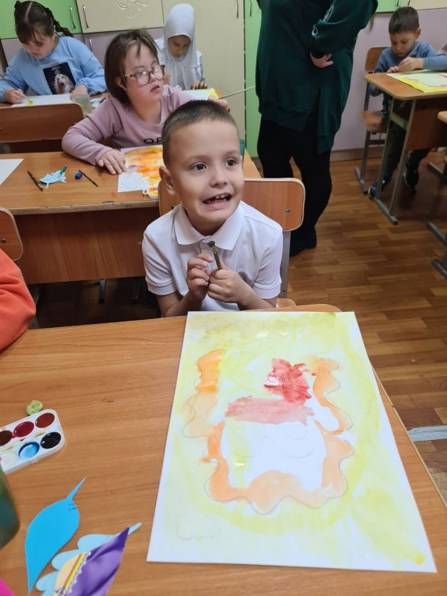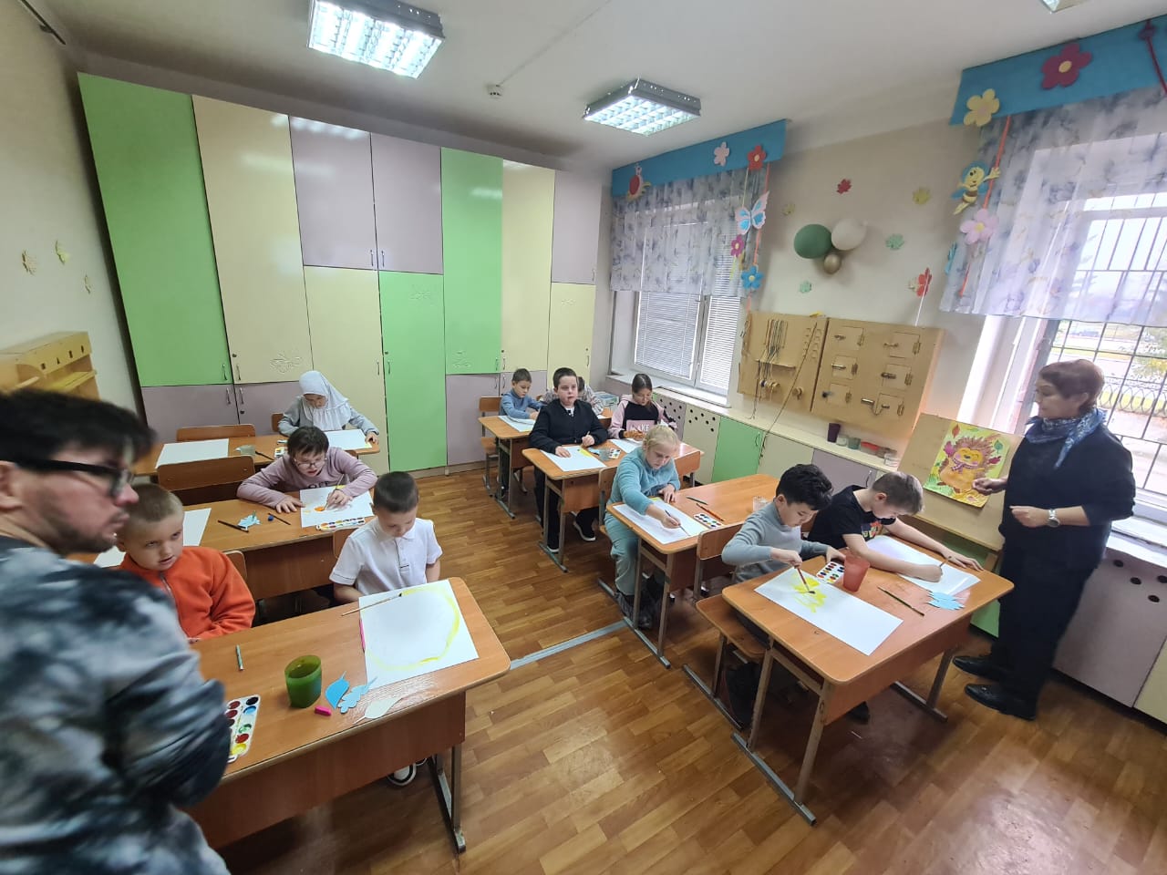 Опубликовано: 27.10.2025Развлекательно – познавательная программа. Мастер-класс «Палитра осени». Сегодня 27 октября ученики 1-4-х, 5б, 6а классов школы № 67 посетили мастер- класс "Палитра осени" в ГДТДиМ. Желающих было так много, что организаторы провели мастер- класс сразу в двух кабинетах. Дети с увлечением рисовали акварелью ёжиков на осенней полянке. Работы получились чудесные, ребята остались довольные!
