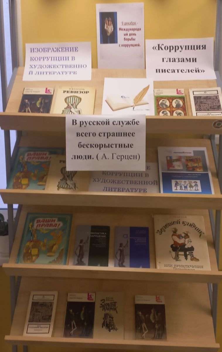 - в библиотеке организовали книжную выставку «Коррупция на страницах художественной литературы»;