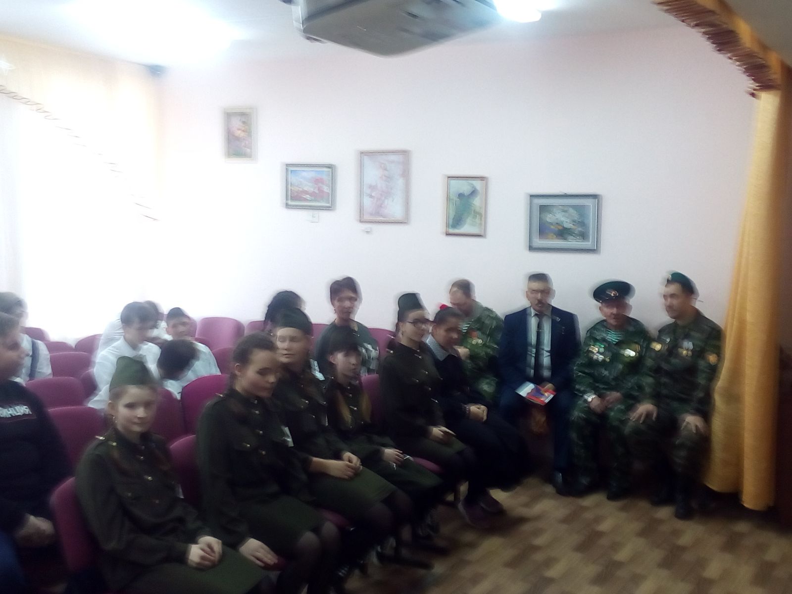Опубликовано: 20.02.2020Сегодня в нашей школе прошел «Урок мужества» для учащихся 8-9 классов. Урок провели ветераны Региональной общественной организации ветеранов участников боевых действий и пограничников запаса РТ: Загидуллин Р.Н., Полянин М.Л., Снегирев П.А., Мардеев Р.Г., Галимов М.К. Гости рассказали ребятам о подвигах наших доблестных пограничников, о лагере военно-патриотического воспитания, который организовали в нашем городе.