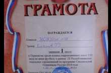 Ура! Футбольная команда школы заняла первое место в Первенстве среди команд коррекционных школ VIII вида по минифутболу в рамках IX Республиканских зональных соревнований по программе Специальной Олимпиады России - 2014 года. Поздравляем наших победителей! Так держать!