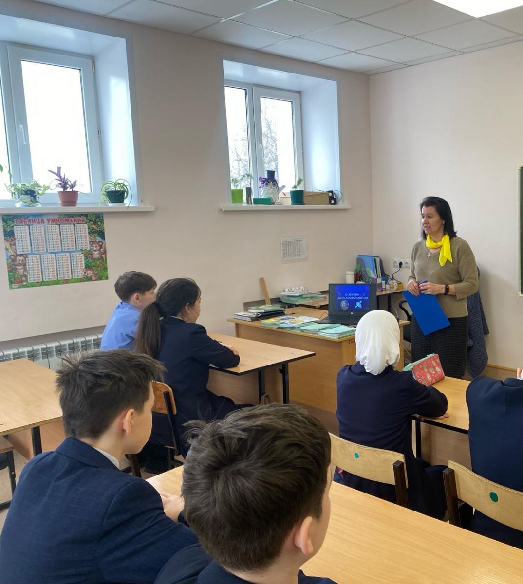 На старте Юрий Гагарин произнес фразу «Поехали!», ставшую впоследствии знаменитой. В рамках этого дня в ГБОУ «Набережночелнинская школа №68» советником директора по воспитанию и взаимодействию с общественными объединениями Фатхиевой Ляйсан Раязовной были проведены мероприятия. С ребятами была организована виртуальная экскурсия, где они познакомились с информацией о космосе и о первом полете человека в космос. Участвовали в викторине «Время первых». Знания, полученные на внеклассных мероприятиях, дети закрепили в своих творческих работах и рисунках. Была оформлена выставка детских работ, посвященные Дню космонавтики. -