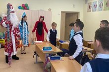Все учащиеся нашей школы получили бесплатные новогодние подарки от МОиН РТ. Добрый Дедушка Мороз, красавица Снегурочка, и веселый Дракоша сегодня вручили эти подарки детям.