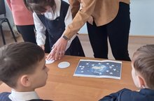 В 2а классе прошло внеклассное мероприятие "Космические приключения". В ходе мероприятия учащиеся смотрели видеоролик, отвечали на интересные вопросы, играли в игру "Разложи звезды", делали аппликацию "Ракета".
