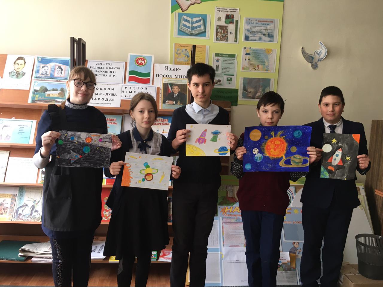 Сегодня в 5а,9а классах Альметьева З.С. провела библиотечный урок "Космическое путешествие", посвященное 60-летию полета Ю.А.Гагарина в космос.