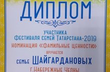 Семья Шайгардановых приняла учстие в фестивале семей Татарстана-2019 "Праздник добрососедства", которы йпрошел в г. Ижминводы и награждена дипломом в номинации "Фамильные ценности"