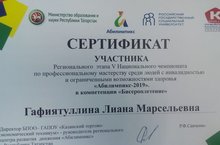 Гафиятуллина Л. приняла участие в Региональном этапе V национального чемпионата "Абилимпикс" по компетенции Бисероплетение.
