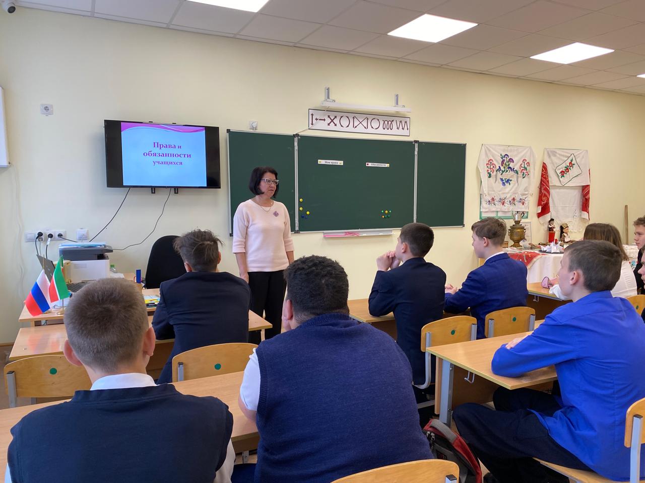 Сегодня, в рамках "Дня правовой помощи" , советник директора по воспитанию Фатхиева Л.Р. провела беседу "Права и обязанности учащихся" , игру "Я и мои права", оформила выставку детских рисунков "Я рисую свои права"