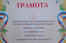Администрация "ООО ЖЭУ 51", в лице директора Орехова Л.Г., наградила учеников школы за добросовестный труд в июне месяце.