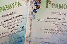 Палаткина Т. награждена грамотой за II место в в городском конкурсе "Чудо валенок" в номинации "Зимнее дерево"