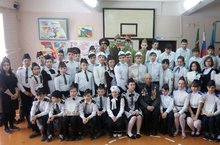 Сегодня в школе прошел Смотр песни и строя с участием ветерана ВОВ Лысак В.И.