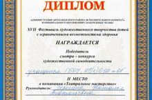 Сегодня учащиеся школы приняли участие в XVII Фестивале художествнного творчества детей с ограниченными возможностями здоровья и были награждены памятными подарками и дипломами.
