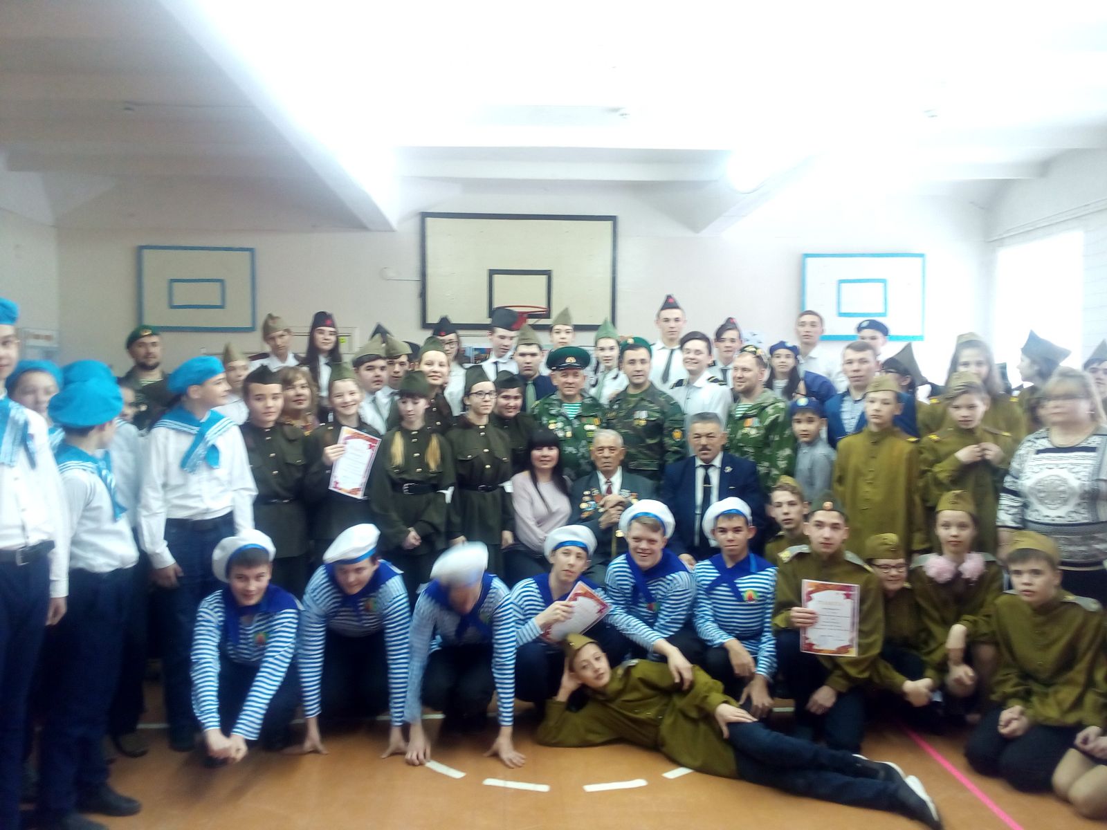 Сегодня в нашей школе прошел конкурс «Смотр строя и песни» среди учащихся 5-9 классов. Этот конкурс мы посвятили Великой Победе русского народа в Великой Отечественной войне, всем защитникам Отечества. На сегодняшнем празднике принимали участие приглашенные гости: ветеран ВОВ Лысак Валентин Иванович, ветераны Региональной общественной организации ветеранов участников боевых действий и пограничников запаса РТ: Загидуллин Р.Н., Полянин М.Л., Снегирев П.А., Мардеев Р.Г., Галимов М.К. Как и в любом конкурсе, в нашем тоже есть победители. Итоги конкурса: