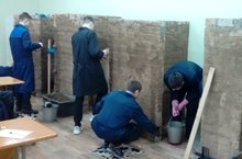 12 марта в рамках Декады трудового обучения прошёл урок по штукатур ному делу по теме: "Навешивание правил и оштукатуривание четырехгранных колонн".