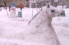 Учащиеся школы украсили школьный двор снежными фигурами.
