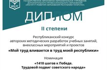 Учитель начальных классов Валиева Резеда Рафхатовна и учитель биологии Пищевских Яна Александровна приняли участие республиканском конкурсе авторских методических разработок учебных занятий, внеклассных мероприятий и проектов «Мой труд вливается в труд моей республики».