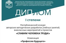 Педагоги нашей школы приняли участие в республиканском конкурсе авторских методических разработок учебных занятий, внеклассных мероприятий и проектов «Славим человека труда!», прошедшего с 11 января по 15 марта 2021 года в соответствии с приказом Института развития образования Республики Татарстан от 11.01.2021 № 1.