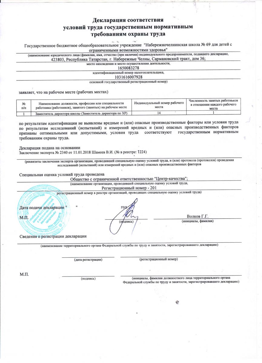 Декларация соответствия условий труда гос. нормативным требованиям охраны труда