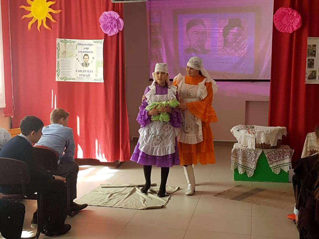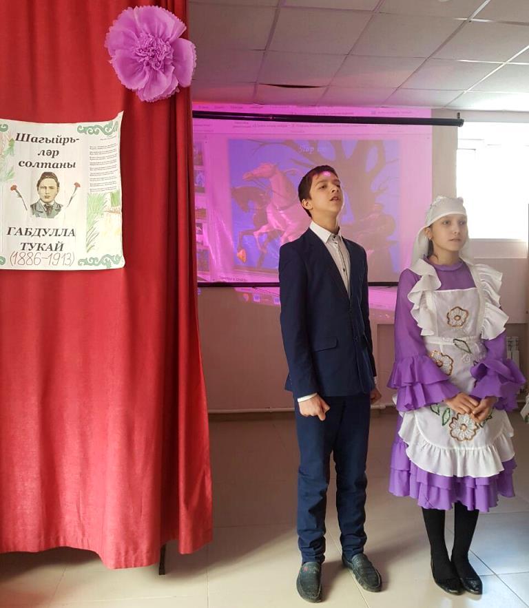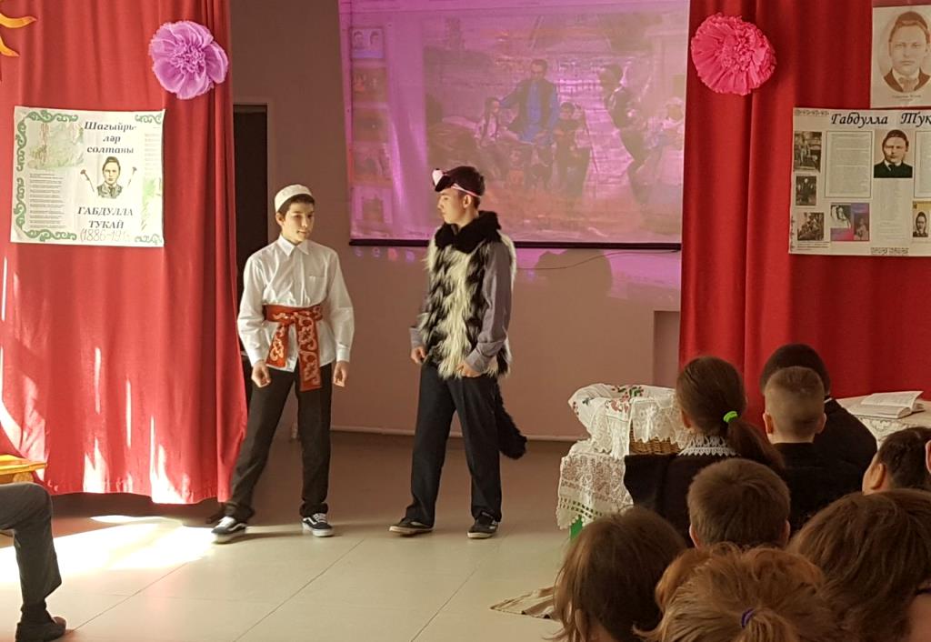 Опубликовано: 25.04.201725нче апрель көнне безнең мәктәп күләмендә татар халкының бөек язучысы Габдулла Тукайның туган көненә багышланган кичә булып узды. Кичәбез бик күңелле булды, "Су анасы" әкиятен, "Кызыклы шәкерт", "Бала белән күбәләк" шигырләрен сәхнәләштереп күрсәттек.