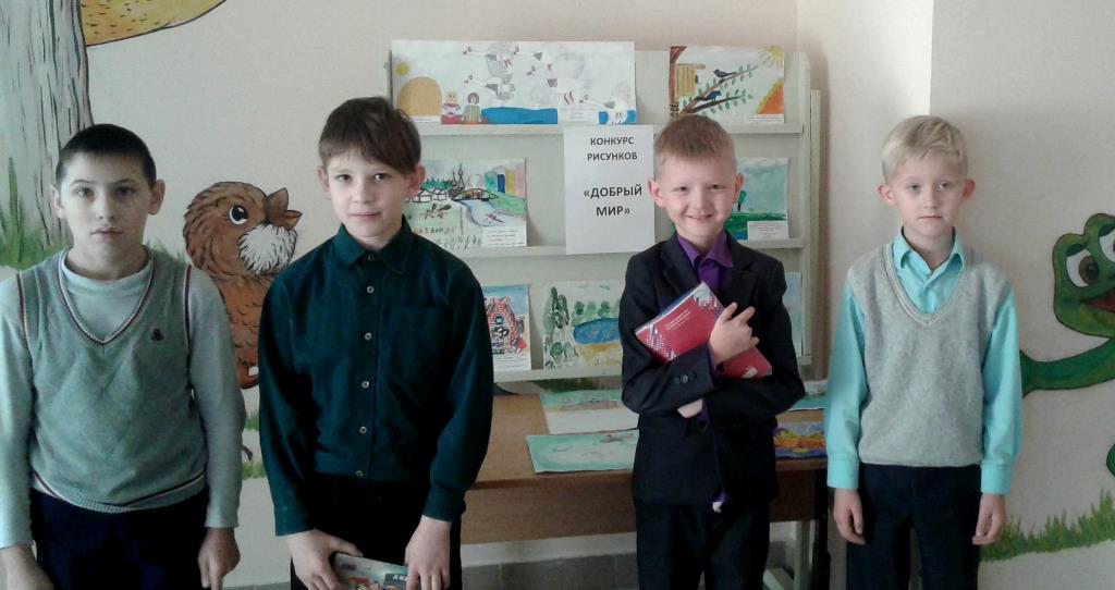 Также учителями и воспитателями начальных классов был проведен конкурс рисунков и организована выставка на тему «Добрый мир». Ученики проявили активность и с удовольствием приняли участие в выставке.