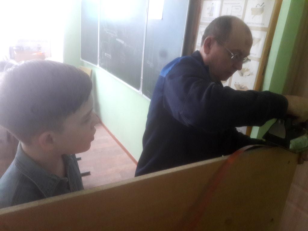 Опубликовано: 29.03.201929.03.2019 учителем столярного дела Гатиным Р.Ш. был показан "мастер-класс" по мелкому ремонту парт для учащегося 7 класса Мухаметзянова Р.