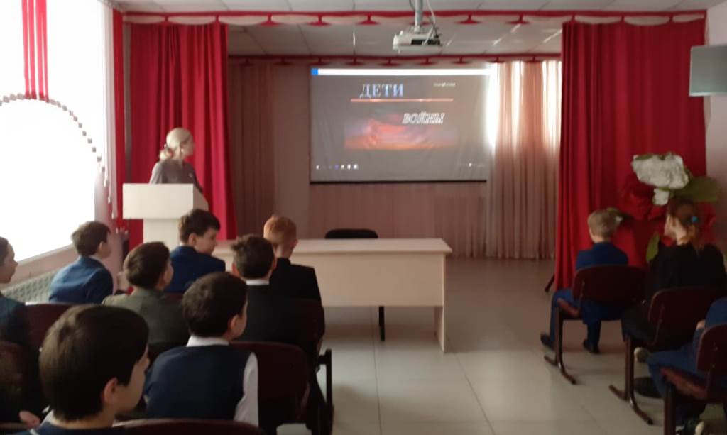 Опубликовано: 28.01.202028.01.2020 К 75-тилетию ВОВ был проведён общешкольный классный час классным руководителем 5в класса Брюховой С.С. Учащимся был представлен отрывок из худ.-док. фильма "Дети войны".