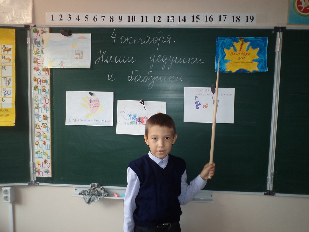 - 4 октября был проведен классные часы «Наши дедушки и бабушки», «Старшее поколение» посвященный нашему старшему поколению. На начале занятия было прочитано стихи о старших. Затем учащиеся по своим нарисованным рисункам охотно рассказывали о своих бабушках и дедушках