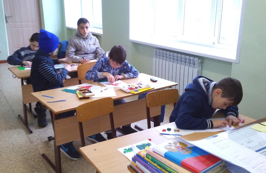 Опубликовано: 31.10.2016В рамках досуга детей в каникулярное время 31.10.2016 г. педгогом Мингалеевой Р.Ж. была организована мастерская «Умелые ручки». Воспитанники выполняли аппликацию пластилином.