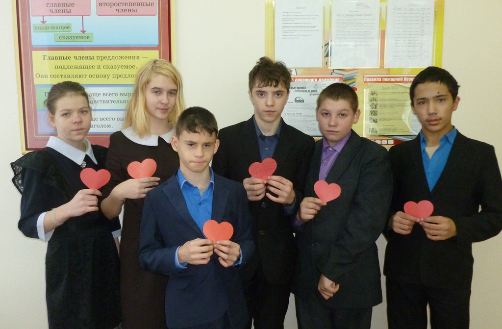 Опубликовано: 05.12.2017В рамках декады инвалидов 05.12.2017 в 7б классе педагогом Акбировой Г.Т. был проведён классный час по теме «Протяни руку помощи». Цели и задачи данного мероприятия: формирование толерантного отношения к инвалидам и лицам с ограниченными возможностями здоровья по слуху и зрению, знакомство с некоторыми проблемами людей-инвалидов, воспитание чувства ответственности за своё здоровье, здоровье своих близких, окружающих и готовность воспринимать здоровье как ценность человеческой жизни. Ребята посмотрели презентацию и приняли активное участие в беседе по данной теме, а также в разыгрывании проблемных ситуаций. В заключение в знак поддержки ученики написали пожелания инвалидам и людям с ОВЗ на сердечках.