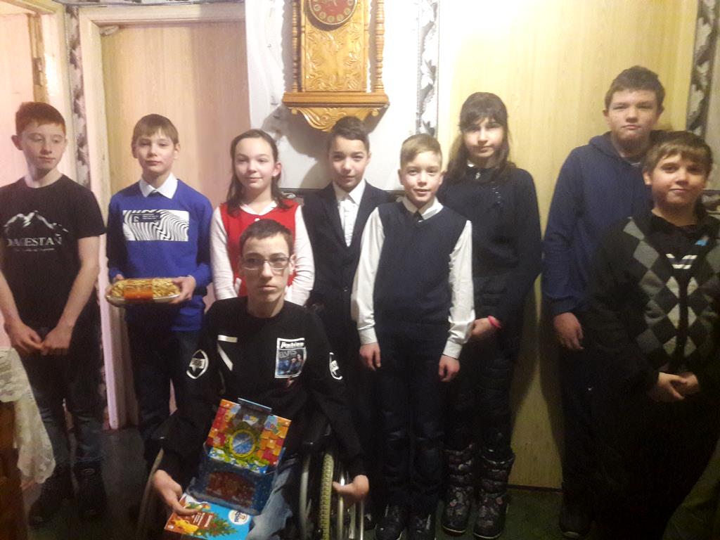 Опубликовано: 26.12.201726.12.17г учащиеся 6а класса под руководством Миннегалиевой Э.С посетили ребенка-инвалида.