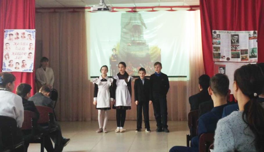 Опубликовано: 19.02.2018Сегодня, в рамках декады родного языка, в нашей школе для 1-9 классов прошло мероприятие, посвящённое поэту-герою Мусе Джалилю. 15.02.2018 поэту исполнилось бы 112 лет!