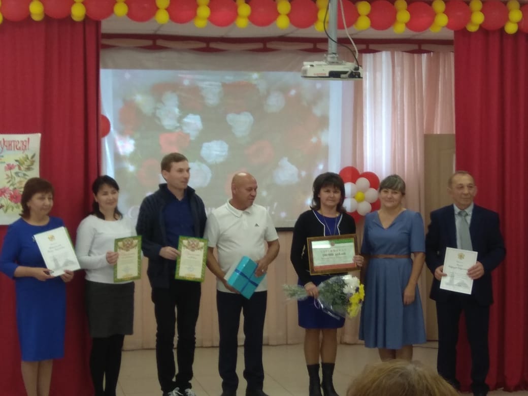 Сегодня в нашей школе был проведён праздничный концерт, посвященный Дню учителя. В нём приняли участие ученики 5-9 класса и учителя, звучали песни, стихотворения о школе и учителях, были поставлены юмористические инсценировки из школьной жизни. Почетными грамотами, словами благодарности, уважения и признательности директором школы был отмечен труд учителей. Учителя получили большой эмоциональный заряд и огромное удовольствие от проведённого мероприятия.
