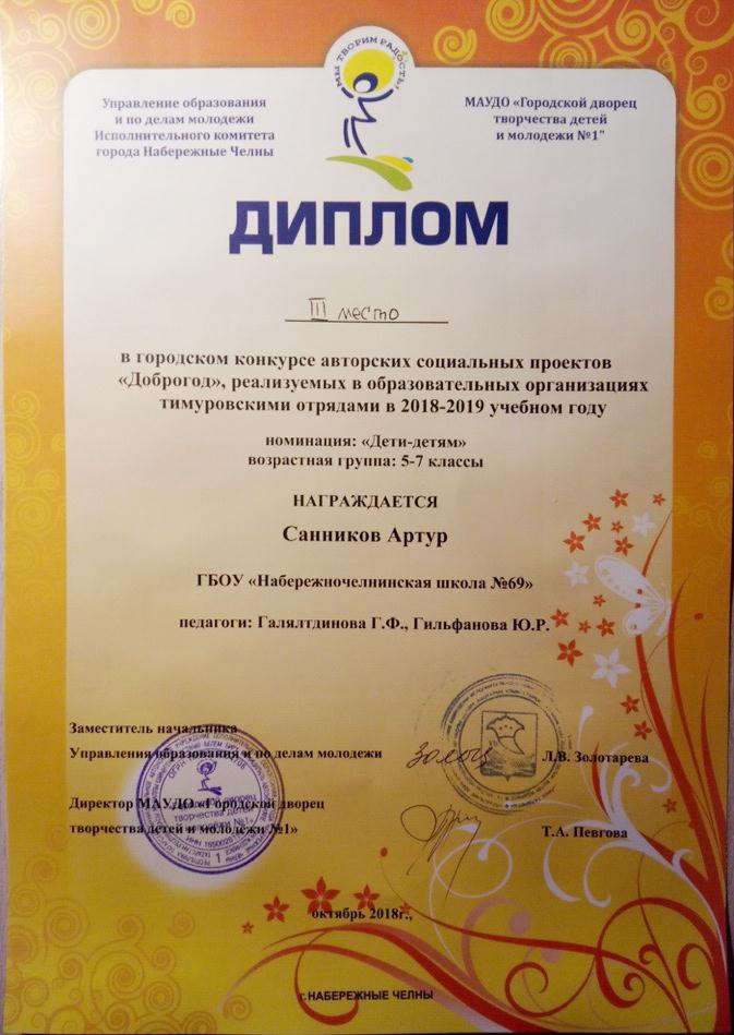 Опубликовано: 31.10.2018"Дети - детям" - это городской конкурс авторских социальных проектов тимуровских отрядов, реализуемых в 2018-19 уч. г. Наши ученики приняли активное участие.