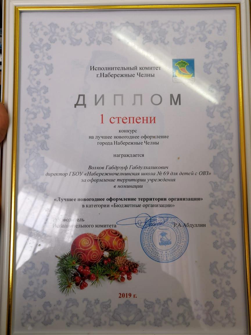 Опубликовано: 14.01.2019Благодаря сплоченной работе коллектива и учащихся школы мы заняли почетное 1 место в конкурсе на лучшее новогоднее оформление города, в номинации "Лучшее новогоднее оформление организации" в категории "Бюджетные организации".